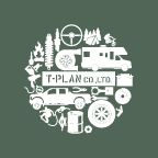 キャンピングカーから大自然へ旅する楽しみ、車でドライブし遊びにいく気持ちを、このロゴに表現しています。これからもT-Plan を皆様と共に盛り上げていくよう丸く円(縁)で包んでいます。