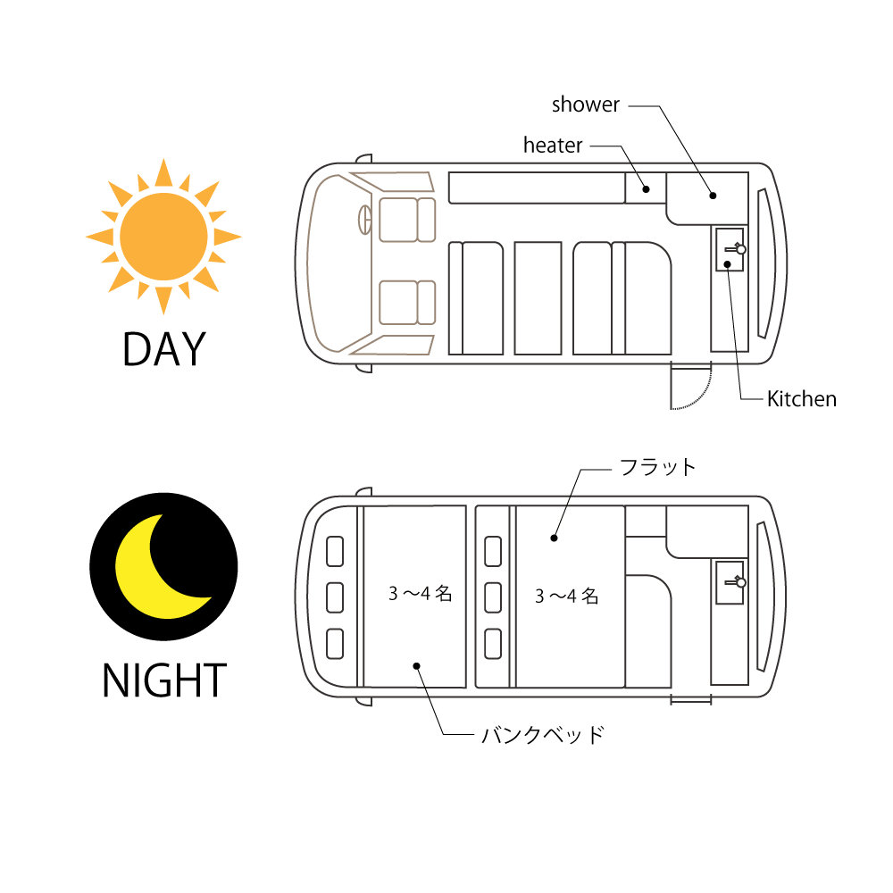 | ルーフBOX | サイクルキャリア | 100Vエアコン完備 |
